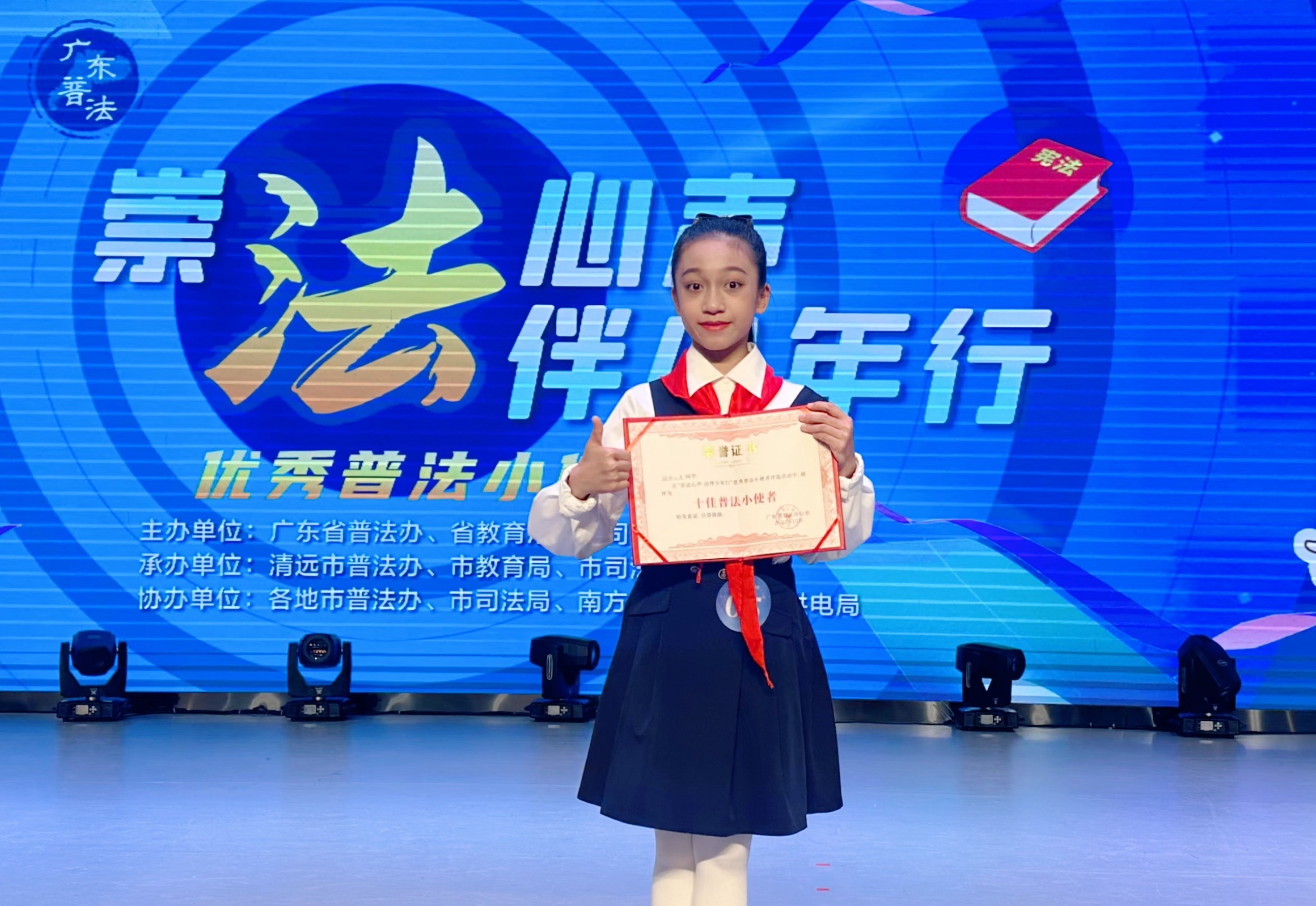 欧阳心彦将法治精神融入日常实践。作为“广东省十佳普法小使者”和“阳江市普法小使者”,她积极投身全市普法宣传工作,思考如何让法律知识更贴近同龄人。